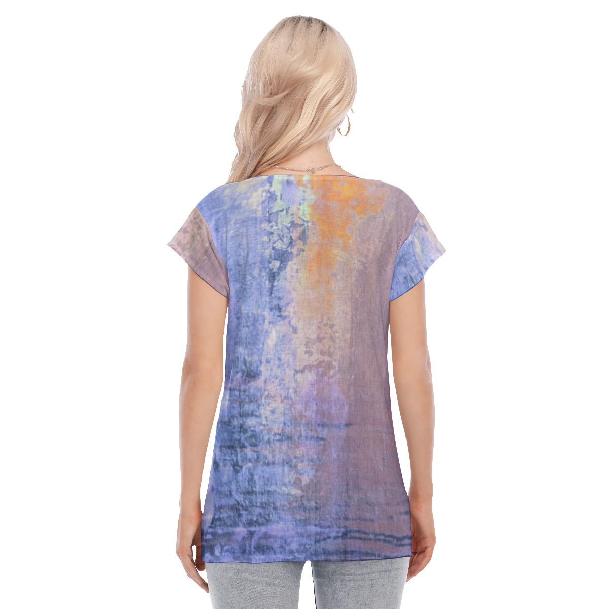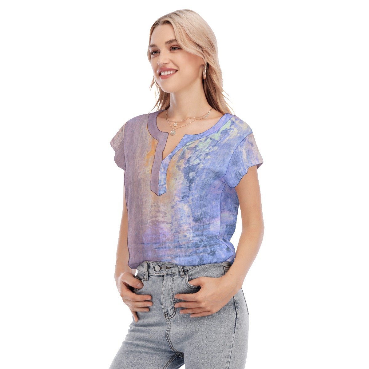 Be the first to review “All-Over Print Women’s Collarless Deep V-neck Short Sleeves Blouse”