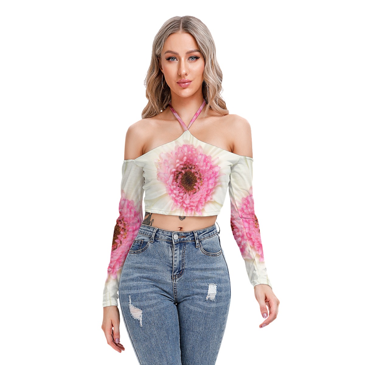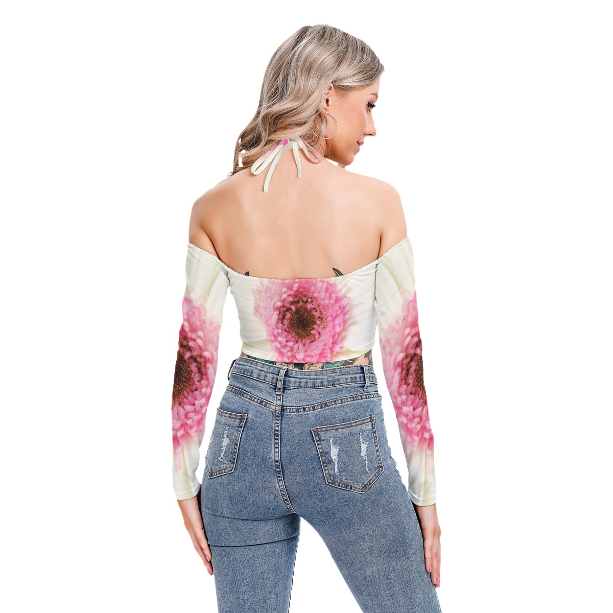 Top features a cropped cut, off the shoulder detail with long sleeves, a halterneck, stretch and lined.It’s a sexy women’s blouse