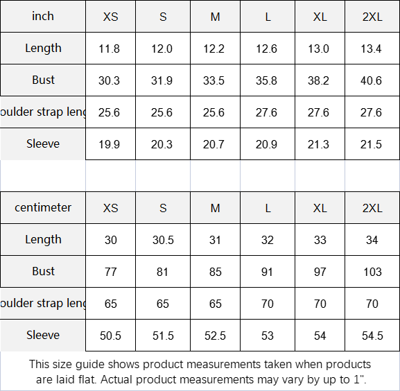 This size guide shows product measurements taken when products are laid flat. Actual product measurements may vary by up to 1″.