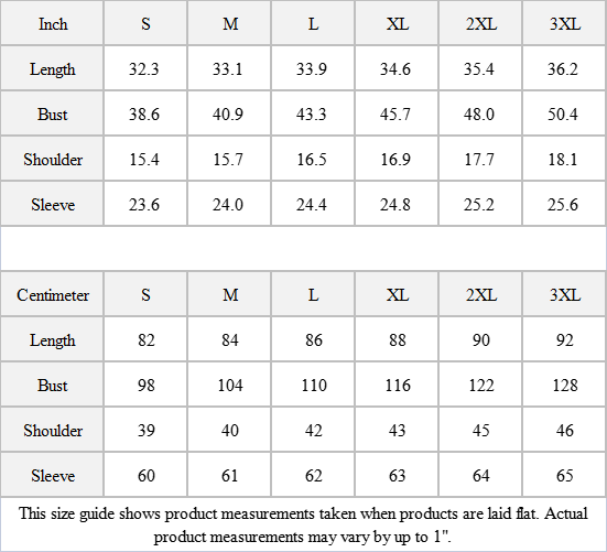 | centimeter | S | M | L | XL | 2XL | 3XL |