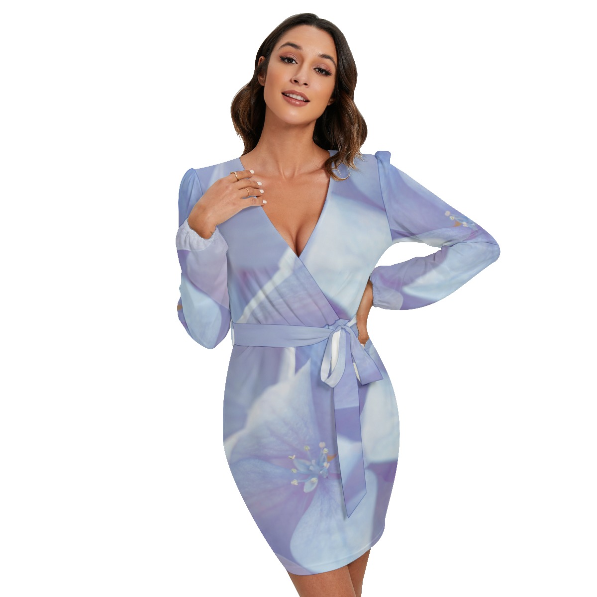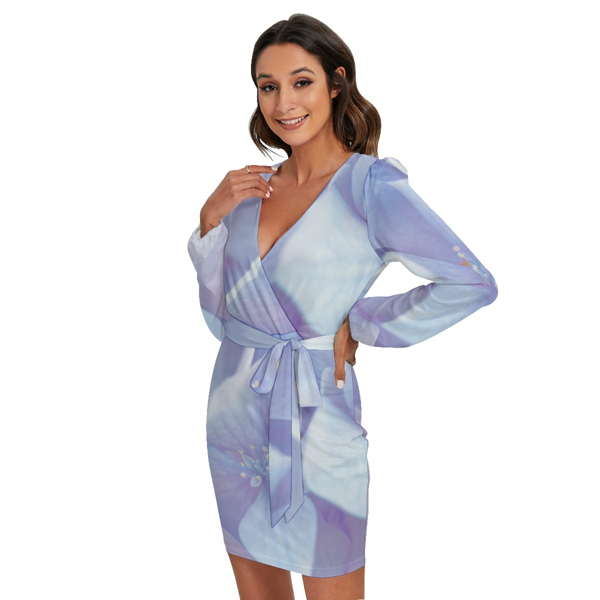 All-Over Print Women’s Long Sleeve Dress With Waist Belt