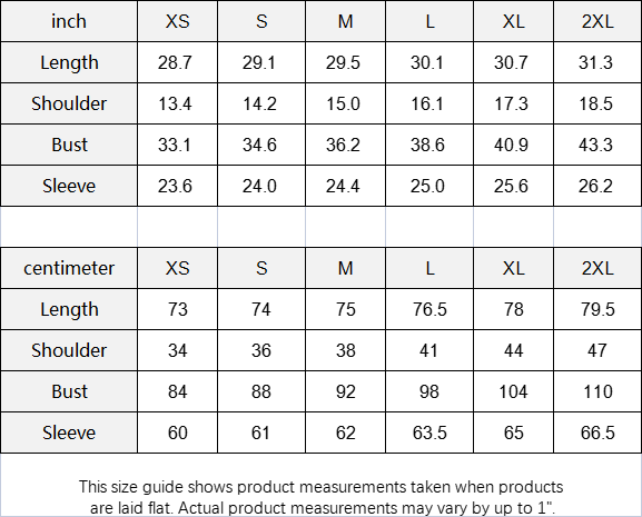 This size guide shows product measurements taken when products are laid flat. Actual product measurements may vary by up to 1″.