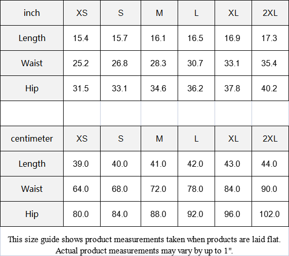 This size guide shows product measurements taken when products are laid flat. Actual product measurements may vary by up to 1″.