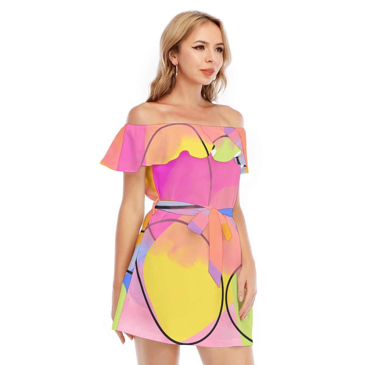 Be the first to review “All-Over Print Women’s Off-shoulder Dress With Ruffle”