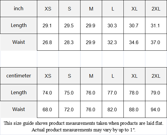 This size guide shows product measurements taken when products are laid flat. Actual product measurements may vary by up to 1″.