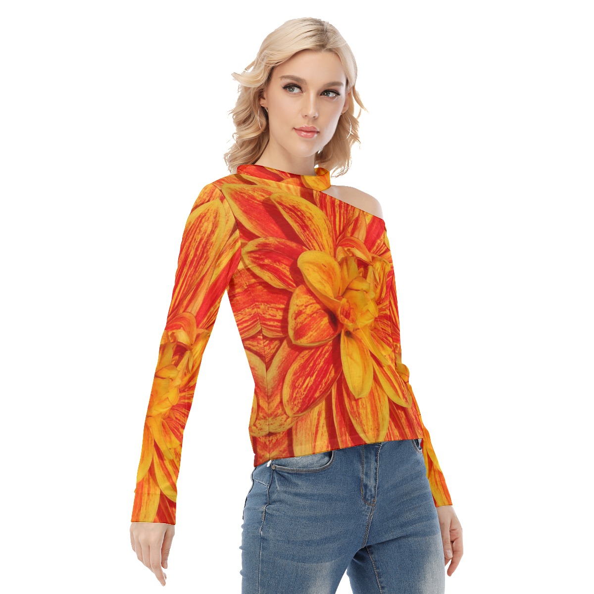 All-Over Print Women’s Off-shoulder Knitted Long-Sleeves T-shirt
