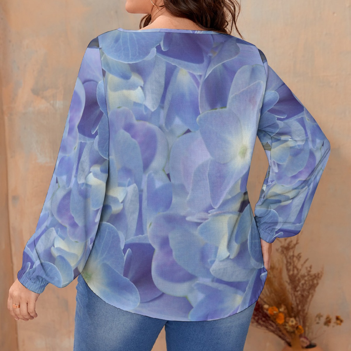 - Long sleeve, crew neck, curved hem, wasit knot.