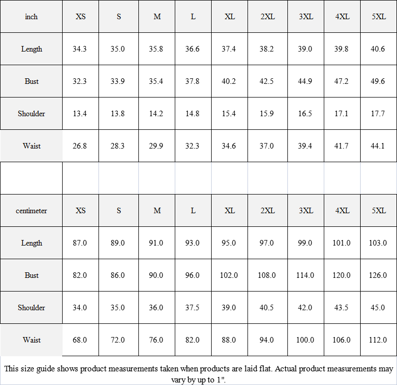 This size guide shows product measurements taken when products are laid flat. Actual product measurements may vary by up to 1″.