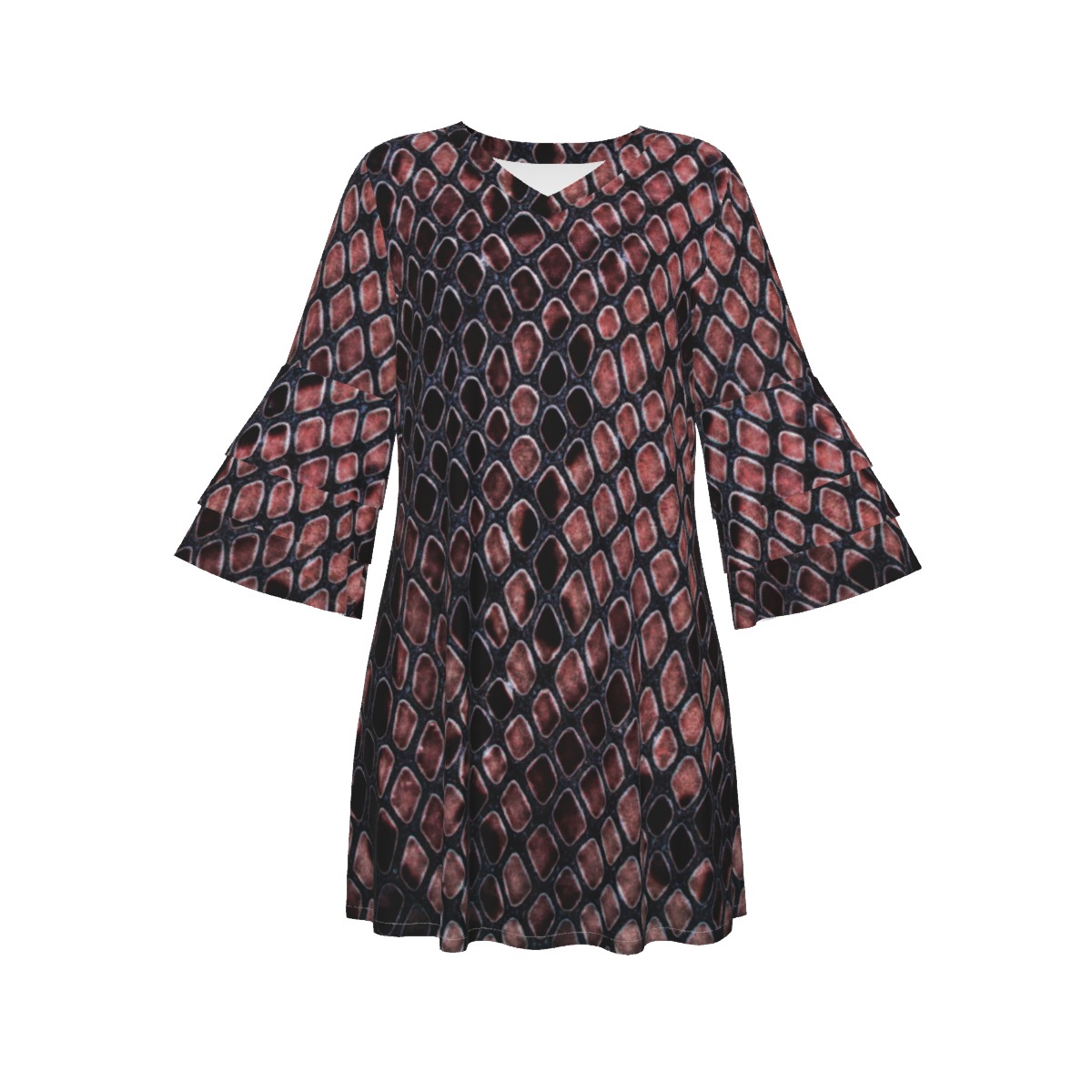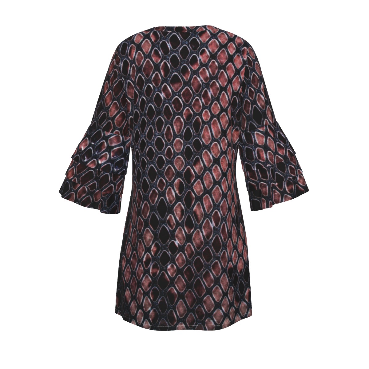 All-Over Print Women’s Stacked Ruffle Sleeve Dress