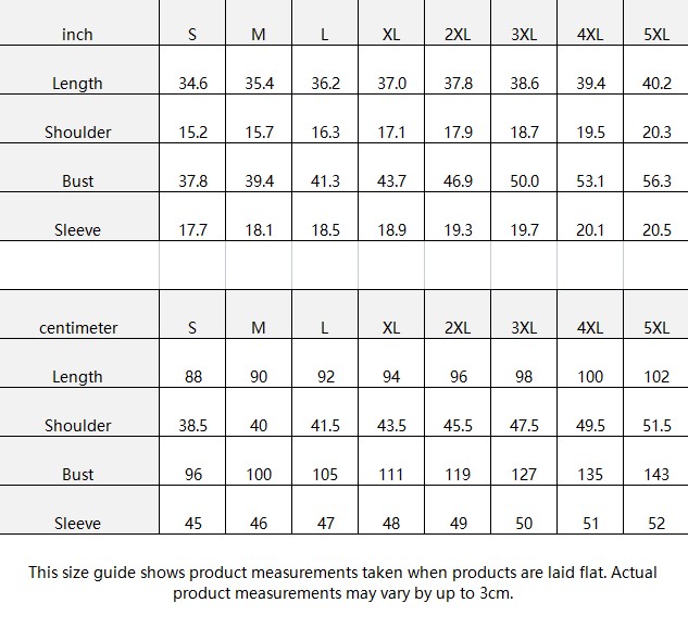 centimeter S M L XL 2XL 3XL 4XL 5XL