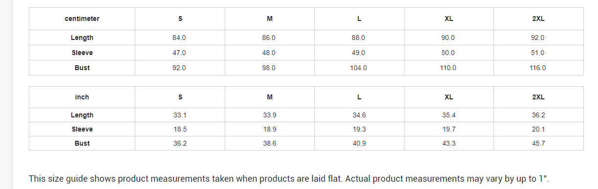 This size guide shows product measurements taken when products are laid flat. Actual product measurements may vary by up to 1″.