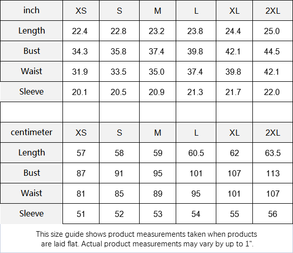 This size guide shows product measurements taken when products are laid flat. Actual product measurements may vary by up to 1″.