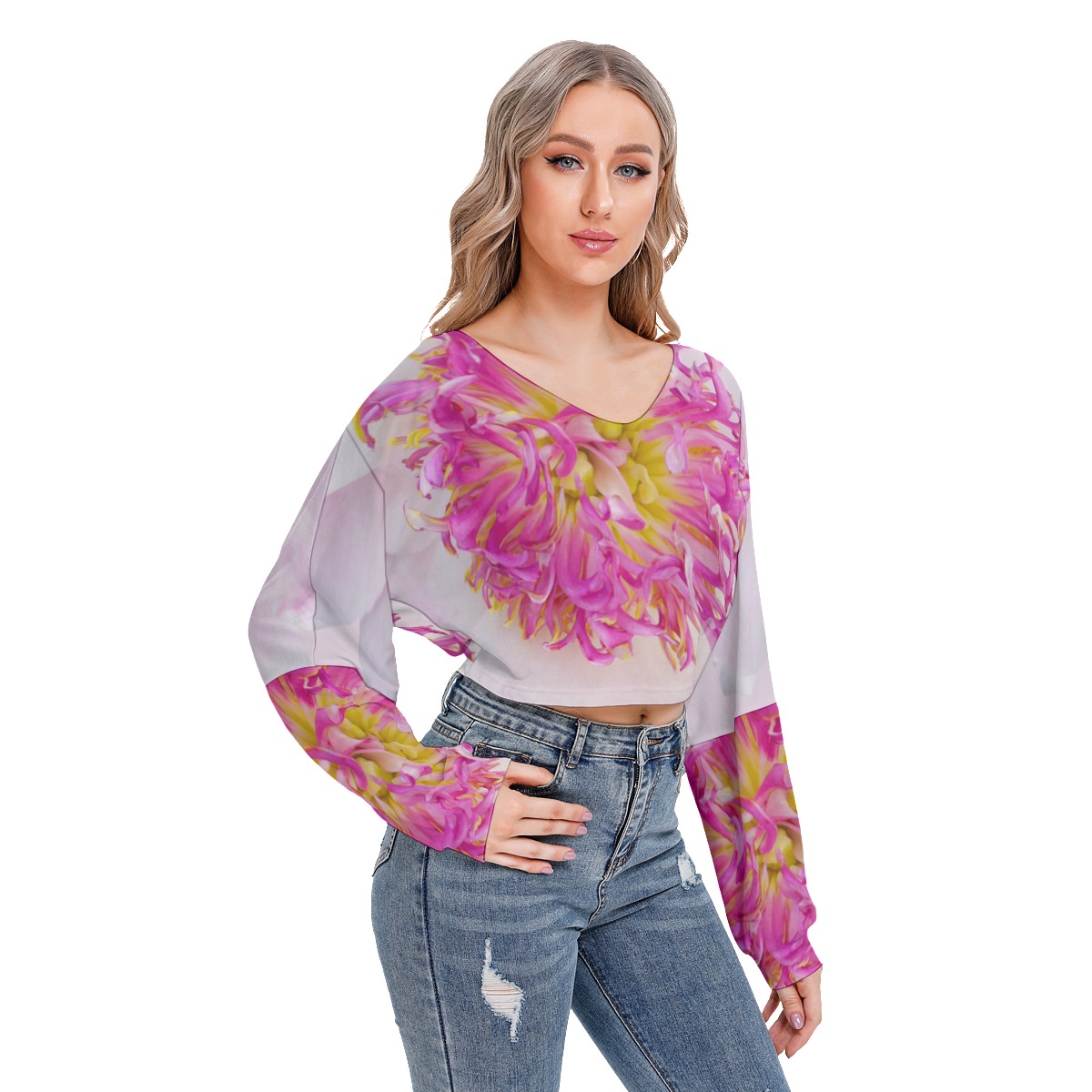 All-Over Print Women’s V-neck Drop-shoulder Cropped Sweatshirt