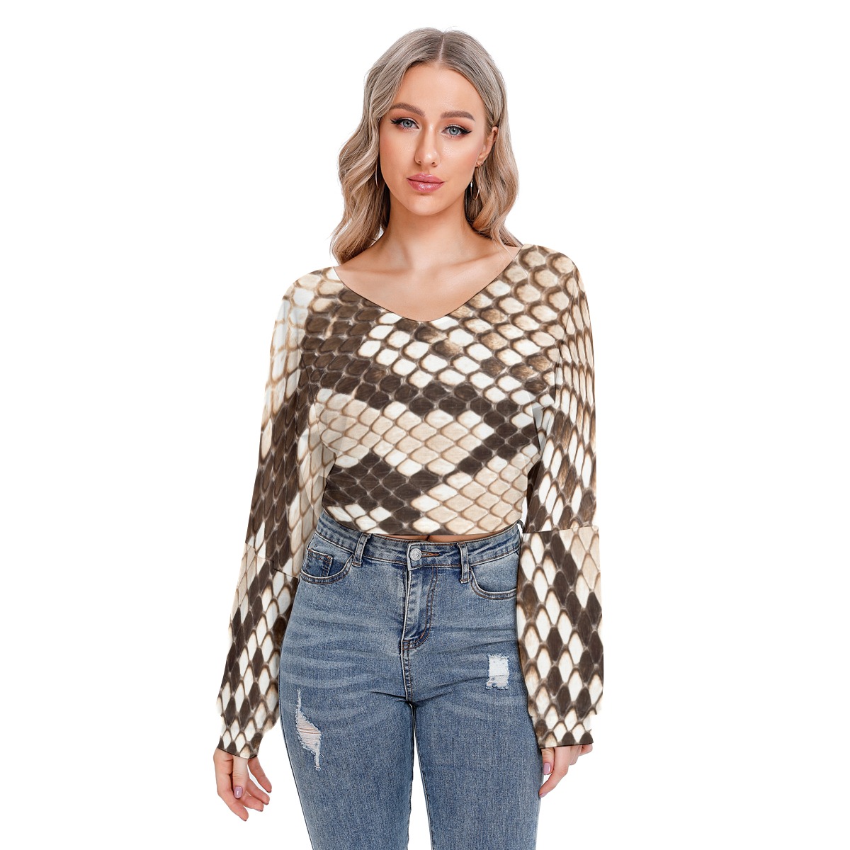 - V-neck, long sleeve, drop-shoulder, cropped top