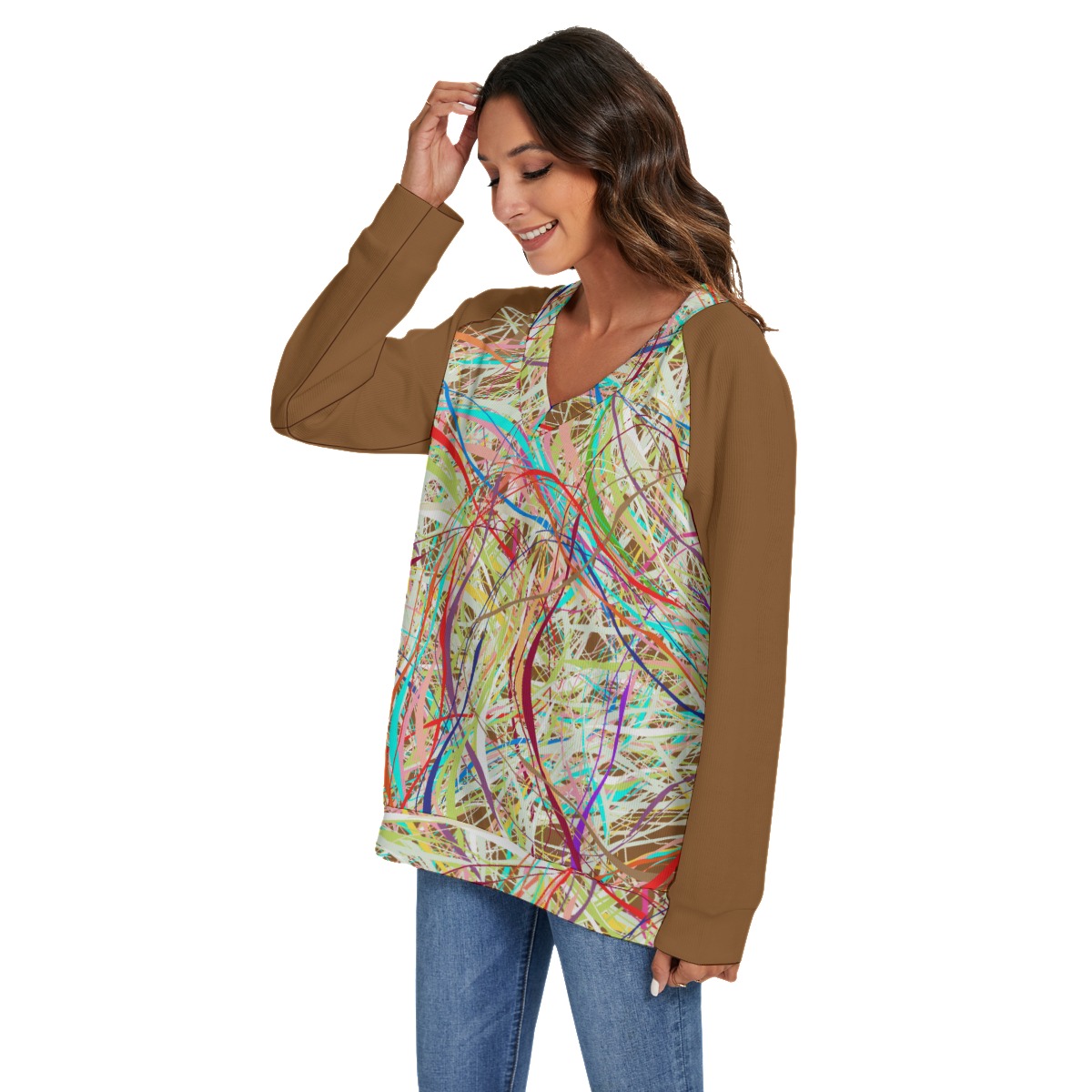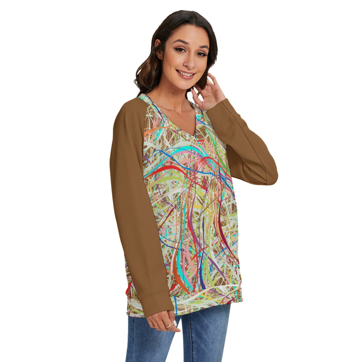 Be the first to review “All-Over Print Women’s V-neck Imitation Knitted Swteater With Long Sleeve”