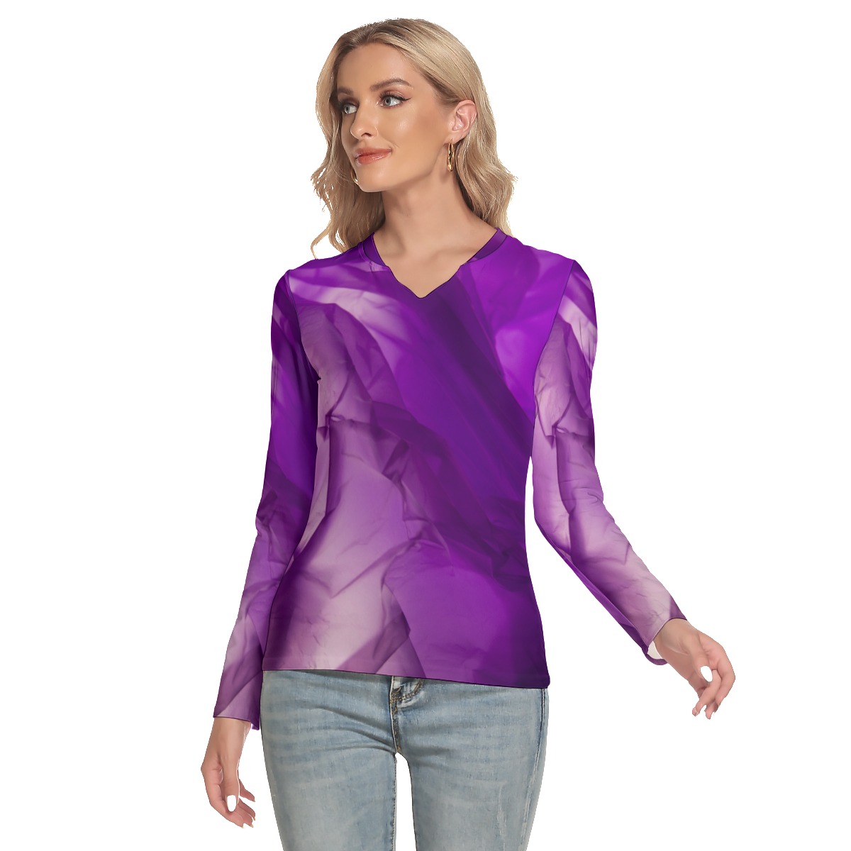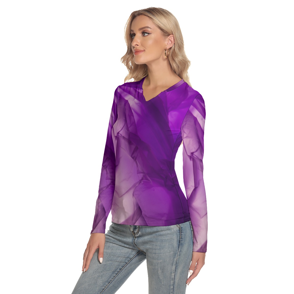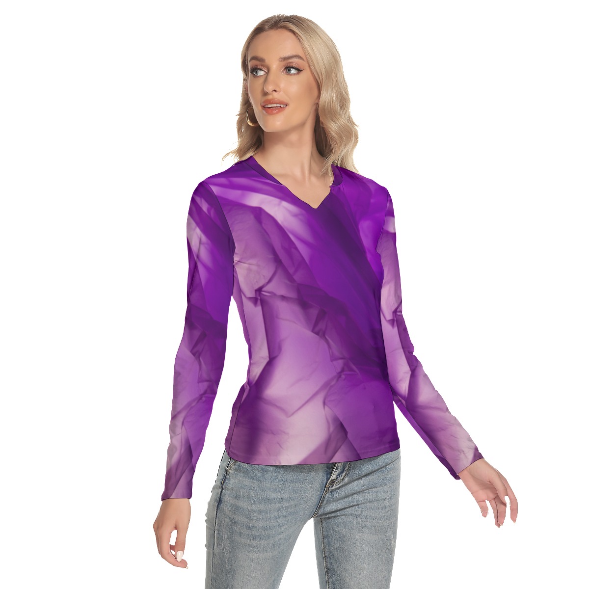 All-Over Print Women’s V-Neck Long Sleeves T-Shirt