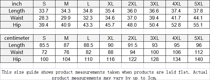 Waist | 72 | 76 | 82 | 88 | 94 | 100 | 106 | 112 |