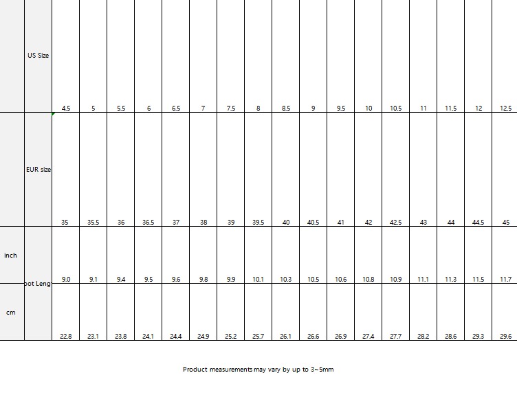 EUR size 35  35.5 36 36.5 37 38 39 39.5 40 40.5 41 42 42.5 43 44 44.5 45